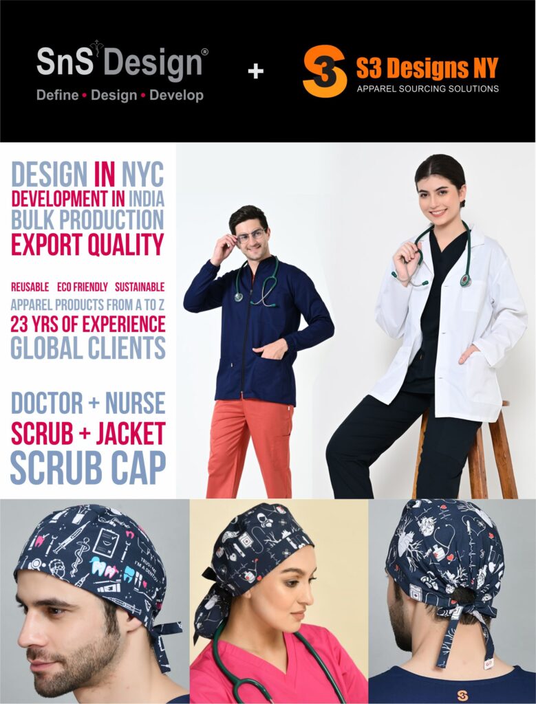 SnS Design, a top-tier NYC product design and development firm, joins forces with S3 Designs NY, India’s leading medical scrubs manufacturer. Together, we create and deliver stylish, sustainable, and high-quality healthcare uniforms – designed in New York and expertly crafted in India for global professionals.